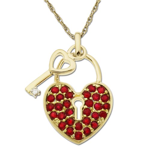 10k Yellow Gold Ruby Heart-Shaped Lock and Key Pendant